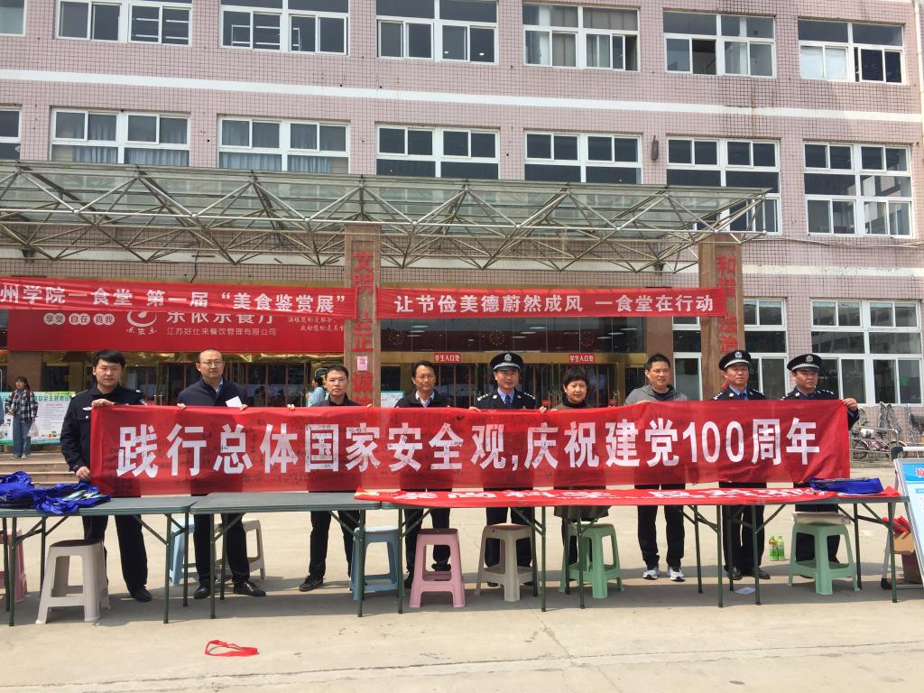 今年4月15日是第六个全民国家安全教育日,为提高我院师生自觉关心、维护国家安全意识,提升安全风险防范水平,按照省厅统一部署和学院《大赢家体育组织开展2021年全民国家安全教育日宣传教育活动的通知》要求,我院于4月15日联合宿州市政法委、宿州市公安局反邪支队、宿州市保密局、埇桥区公安局国保大队等单位开展国家安全教育日宣传教育活动。院党委书记汪刘送,党委委员、副院长李亮,宣传部、学工部、办公室、团委、保卫处主要负责人和二级学院党委书记代表参加活动。