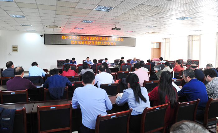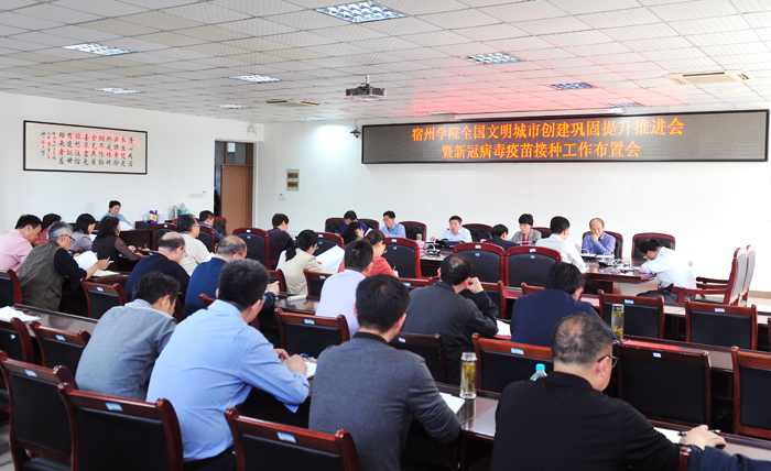 会上,院党委书记汪刘送传达了宿州市文明委扩大会议暨全国文明城市创建巩固提升推进会精神;党委副书记蔡之让就我院融入宿州市做好全国文明城市创建巩固提升工作及创建全国文明校园工作做了具体安排部署;后勤管理处处长周家华汇报了我院新冠病毒疫苗接种工作方案。