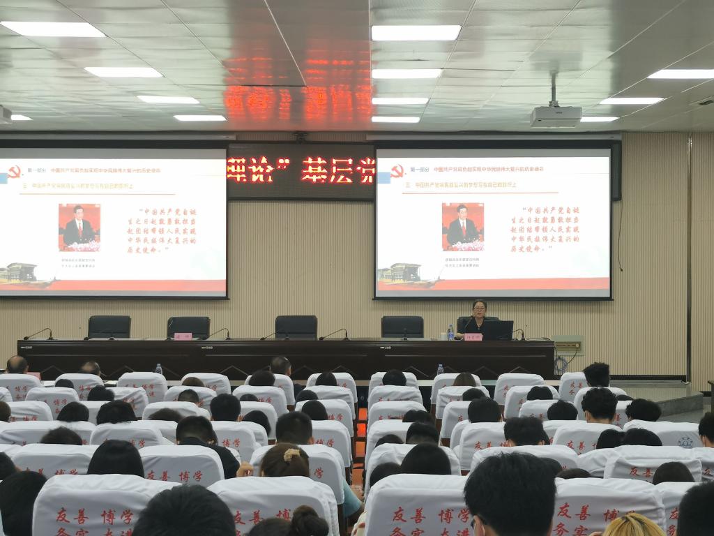 报告以“中国共产党与中华民族伟大复兴”为主题,讲述了中国共产党肩负起实现中华民族伟大复兴的历史使命、中国共产党谱写了实现中华民族伟大复兴的壮丽篇章、中国共产党开启了实现中华民族伟大复兴的新征程三个部分,结合大量史实讲透了中国共产党的领导是历史发展的必然,是中国人民的选择,是实现中华民族伟大复兴的根本保证。宣讲主题鲜明,内容丰富,重点突出,具有很强的思想性、指导性、针对性,受到了现场听众的一致好评。
