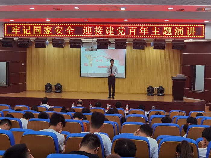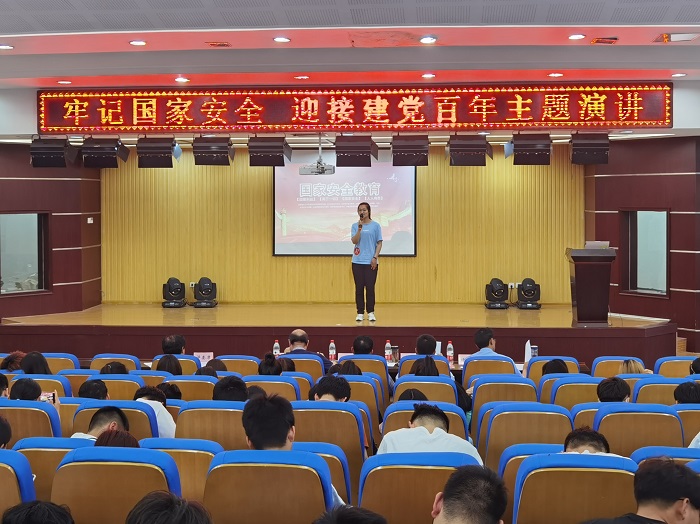 为了迎接中国共产党建党100周年,深化党史学习教育,培养广大师生的国家安全观,提升国家安全意识,加强师生的法制教育,牢固树立家国情怀,不断增强国家使命感和民族自豪感。6月18日下午, 我院联合宿州市国家安全局在工科楼招聘大厅举办“牢记国家安全 迎接建党百年”主题演讲比赛。国家安全局领导、马克思主义学院院长李玉才、国合处处长汪文哲、学生处处长孙增响担任评委。