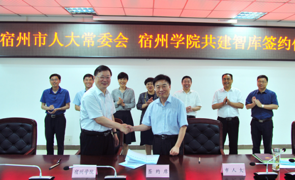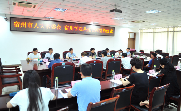 6月24日上午,宿州市人大常委会与大赢家体育共建智库合作协议签约仪式在我院逸夫楼第一会议室举行。宿州市人大常委会党组书记、主任赵琳,党组成员、副主任侯家春,党组成员、秘书长宋成远等一行七人受邀出席仪式。我院党委书记汪刘送,党委副书记、院长张莉,党委副书记蔡之让,党委委员、副院长李亮、张英彦,党委委员、纪委书记、监察专员王俊出席签约仪式,组织部、宣传部、科技处、教务处、文学与传媒学院等相关部门负责人参加了签约仪式。签约仪式由张莉主持。