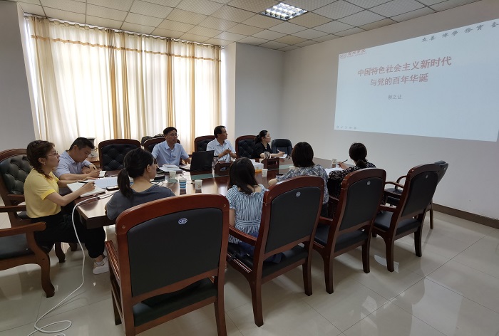 6月29日下午,院党委副书记蔡之让在逸夫楼A510为学工部党支部全体党员上党课,重点围绕党的百年历史和中国特色社会主义新时代开展集中学习。学工部党支部全体党员聆听了党课。