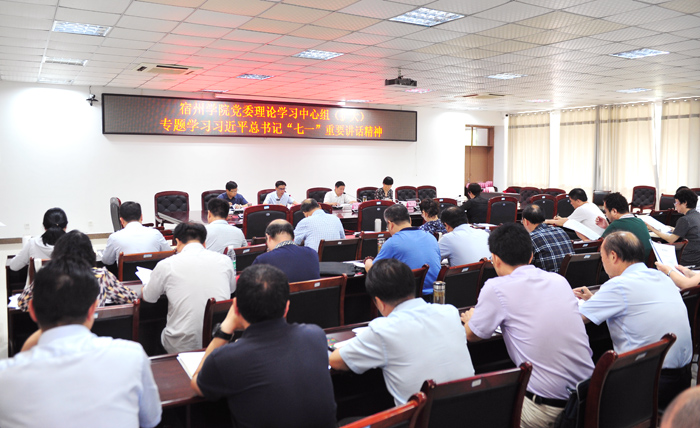 7月9日上午,我院在逸夫楼第一会议室召开党委理论学习中心组(扩大)学习会专题学习习近平总书记在庆祝中国共产党成立100周年大会上的重要讲话精神。院领导,党委理论学习中心组全体成员,各职能部门、各二级学院党政主要负责人参加会议。党委书记汪刘送主持会议。