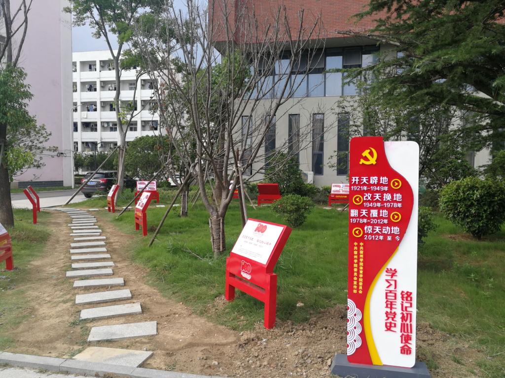 在宣传角,开展了“学习百年党史,铭记初心使命”专题宣传,竖立了“开天辟地”、“改天换地”、“翻天覆地”、“惊天动地”等宣传展板。展板以时间为横轴,历史事件为纵轴,图文并茂地再现了中国共产党的百年光辉历程。