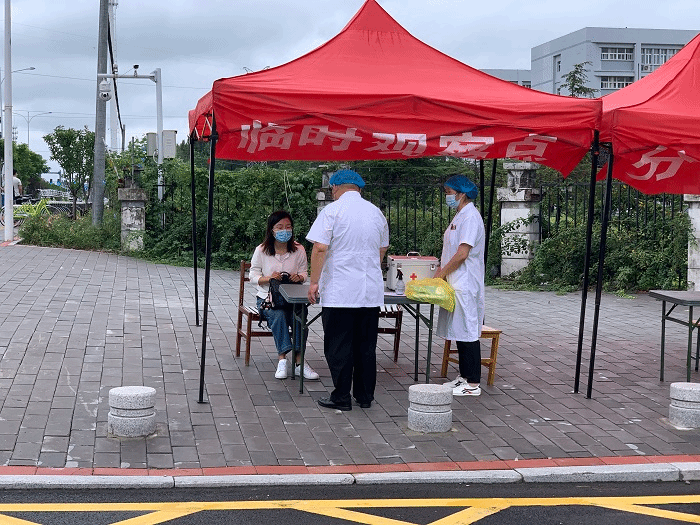 在学校大门演练区,学生队伍保持1.5米安全距离,手持48小时核酸检测阴性证明、经过扫安康码及行程码、测量体温,手足消毒,行李消毒,核验身份,无异常方可入校。体温异常者,医护人员迅速将其带至临时观察点进行体温复测并登记信息,复测正常后,按照规定程序入校;复测仍然异常者,立即报告学校疫情防控领导小组,启动防疫应急处置程序,拨打120并陪送发热学生至定点医院就诊,相关人员随即对临时观察点进行消毒。