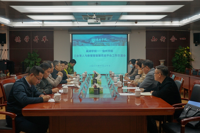 为进一步加强与兄弟院校的交流与合作,学习借鉴兄弟院校在“三全育人”、“教-管-服一体化智慧思政平台”建设等工作方面的宝贵经验,校党委副书记蔡之让一行6人赴巢湖学院、合肥师范学院调研交流。党委宣传部(党委统战部、文明办)部长李真、党委学生工作部(学生处)部长李月云、教务处(创新创业学院、考试考证中心)副处长刘超、校办公室(党委办公室、校长办公室、网络与信息技术中心)科长国红军等随队一同参加调研交流。