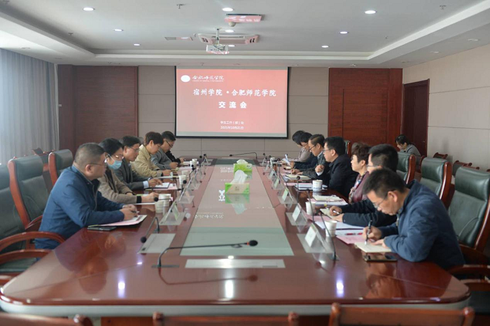10月21日上午,校党委副书记蔡之让一行6人来到合肥师范学院,围绕着“三全育人”、辅导员队伍建设、“教管服一体化智慧思政平台”等主题进行调研交流。合肥师范学院纪委书记徐文林、党委宣传部副部长赵波、党委学工部部长陆涛、党委学工部副部长刘艳、校办公室副主任朱玉国、教务处副处长李健、辅导员协会会长、化学与化学工程学院辅导员张晖及相关人员参会。会议由徐文林主持。