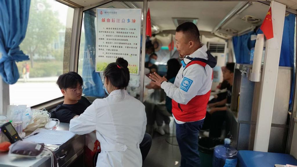 活动前期,志愿者通过线上对无偿献血和造血干细胞捐献进行了宣传和动员。活动现场,志愿者组织献血同学有序排队,积极宣传无偿献血和造血干细胞捐献知识,讲解介绍献血流程和注意事项,指导填写健康征询表和献血登记表,然后依次进行健康征询与体检、血液检测,献血。活动期间,宿州市红十字三献志愿服务队的志愿者们也到活动现场指导工作。