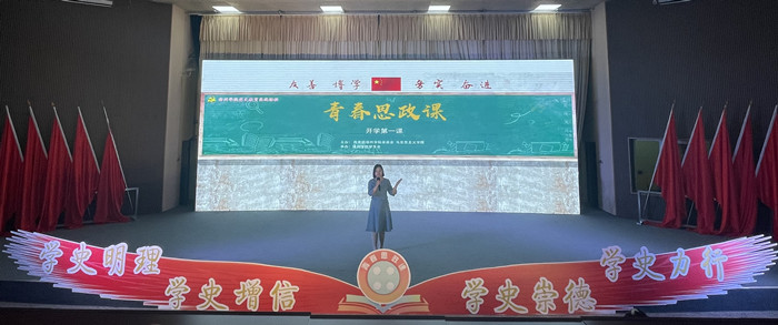 活动在青年教师和学生代表演唱的《梦想课堂》歌曲中拉开序幕。整场活动以一节思政公开课的形式呈现,马克思主义学院青年教师余晓宏作为主讲人,三位优秀青年宣讲人依次上场,呈现一堂绽放青春光彩、激扬青春活力、砥砺青春理想的创新“思政课”。