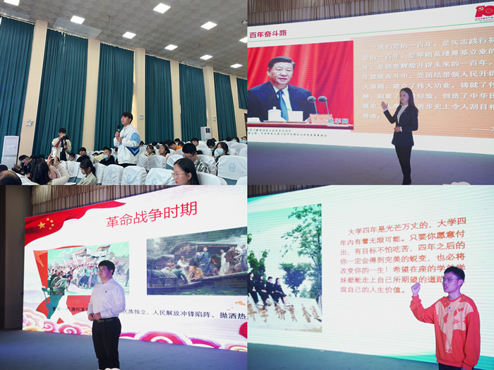 为深入开展党史学习教育,探索思政课实践教学改革,推进思政课第一课堂与第二课堂融合发展,增强思想政治理论课实效性,10月27日,由共青团大赢家体育委员会、马克思主义学院共同主办的第五期青春思政课——“青春起航一路向阳”在大学生活动中心开讲。马克思主义学院院长刘超、教务处处长王红艳、团委书记凌峰、组织部副部长王淑霞、学工部副部长贾学彬、部分二级学院团委书记以及300余名学生参加活动。