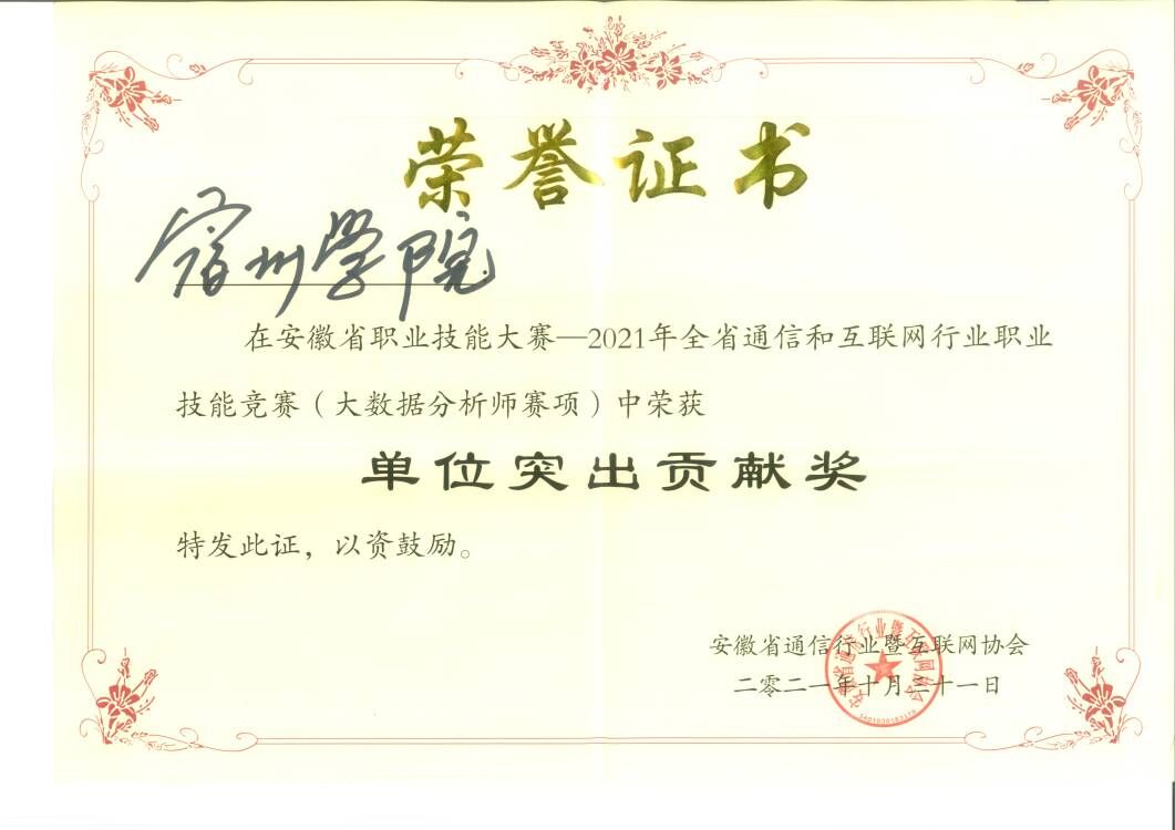 10月30-31日,由安徽省人社厅、总工会、通信管理局指导,安徽省通信行业暨互联网协会主办的安徽省职业技能大赛——2021年全省通信和互联网行业职业技能竞赛(大数据分析师赛项)在安徽国际商务职业学院成功举办。信息工程学院教师张志伟博士带领参赛教师和学生积极备战,荣获职工组一等奖一项,三等奖两项,本科学生组荣获二等奖一项,大赢家体育荣获“单位突出贡献奖”。