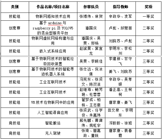 此次决赛有创意赛、技能赛和竞技赛三个大类,主要考查学生的创作和动手能力,教务处、信息工程学院前期成立竞赛领导小组,针对竞赛的内容及组织方式,统筹安排校内赛,根据竞赛考纲,积极组织学生参与作品制作和培训,认真备赛。本次大赢家体育代表队取得了丰硕的成果,具体获奖名单如下。