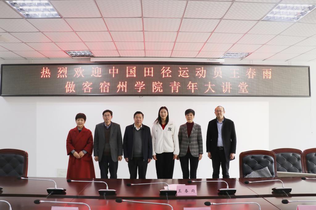 会前,党委书记汪刘送、校长张莉、党委副书记蔡之让、党委宣传部部长李真在逸夫楼第一会议室亲切会见了王春雨,代表学校表达感谢和欢迎。校领导对王春雨在东京奥运会上的优异成绩给予高度赞赏,并期待她继续弘扬“更快、更高、更强、更团结”的奥运精神,不断提高自身运动水平,在杭州亚运会和巴黎奥运会等比赛中再创佳绩、再攀高峰,为国家、为安徽增添更多光彩。