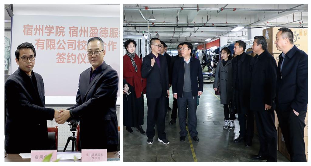 杨维志对美术与设计学院与宿州盈德服装有限公司共建服装智造联合研发基地(博士科研工作站)表示祝贺。他强调,要持续推进“4510”校地联合科创行动,对标安徽省“三地一区”和宿州市“一城两区三基地”建设,围绕促进教育链、人才链、产业链、创新链“四链融合”,推动专业、产业、企业、就业和事业发展“五业联动”,促进资源共享、优势互补、发展共赢。“4510”校地联合科创行动旨在共建集人才聚集、科技创新、成果转化、产业孵化为一体的高水平校地联合科创平台,打造皖北乃至全省的校地合作、协同创新、助力高质量发展的典型典范。