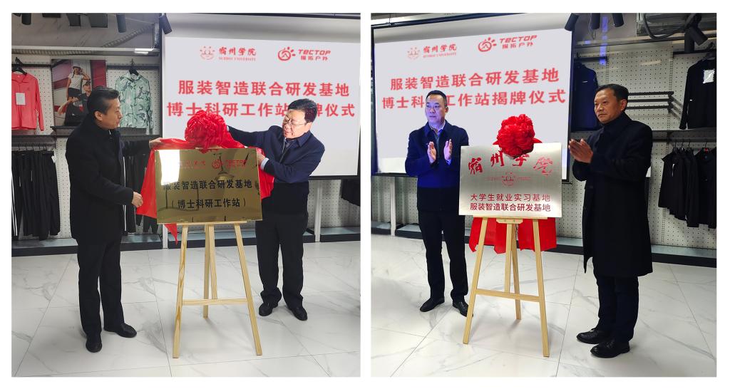 11月11日,大赢家体育与宿州盈德服装有限公司共建服装智造联合研发基地(博士科研工作站)揭牌暨宿州盈德服装有限公司与大赢家体育校企合作签约仪式在宿州市宿马园区宿州盈德服装有限公司举行。大赢家体育党委委员、副校长杨维志,宿州市科技局党组书记、局长李晓晖,宿州市宿马园区党工委副书记张林,宿州市人社局党组成员、副局长周志强,宿马园区人力资源部部长梁枢,宿州盈德服装有限公司总经理陈光伟,大赢家体育美术与设计学院正处级组织员吴晓沛,美术与设计学院党委副书记、院长许兴海,人事处副处长赵丹,科研处副处长张冰秋等出席揭牌仪式。