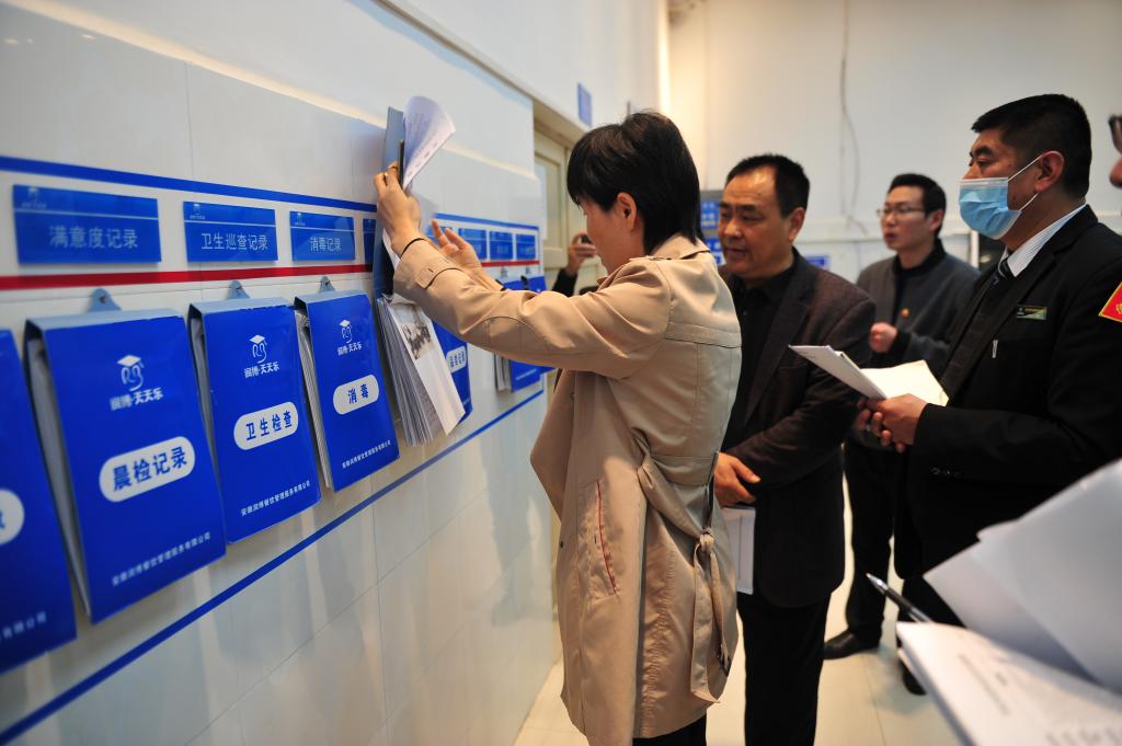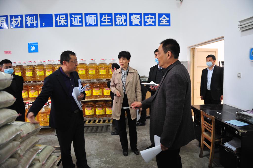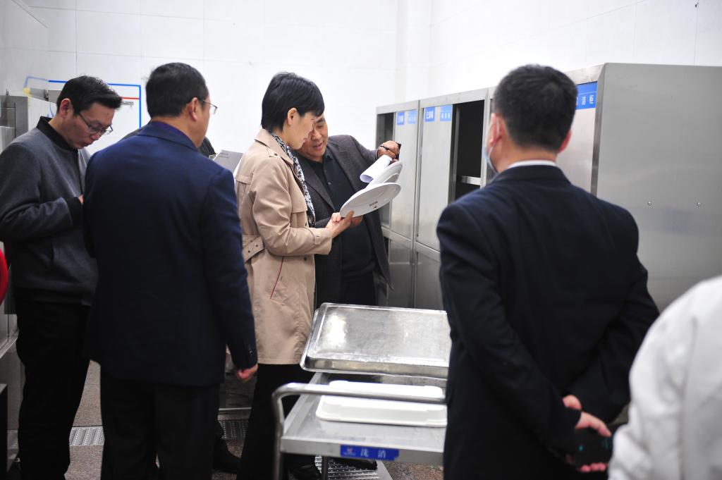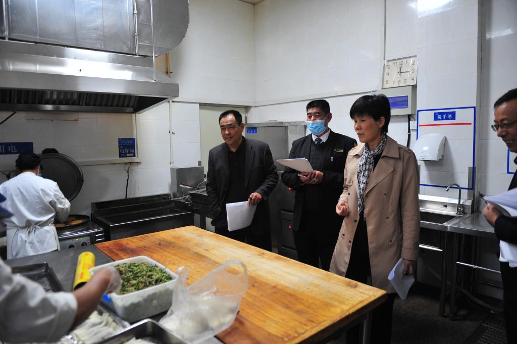 校领导重点检查了后厨主副食品仓库与各类食品加工间,并仔细查看食堂从业人员健康证和餐具消毒、食品留样、添加剂记录、物资采购等台账资料,详细了解食材来源、储存与加工等环节,以及相关食品安全卫生管理制度落实情况。