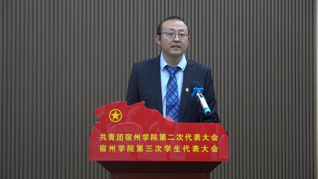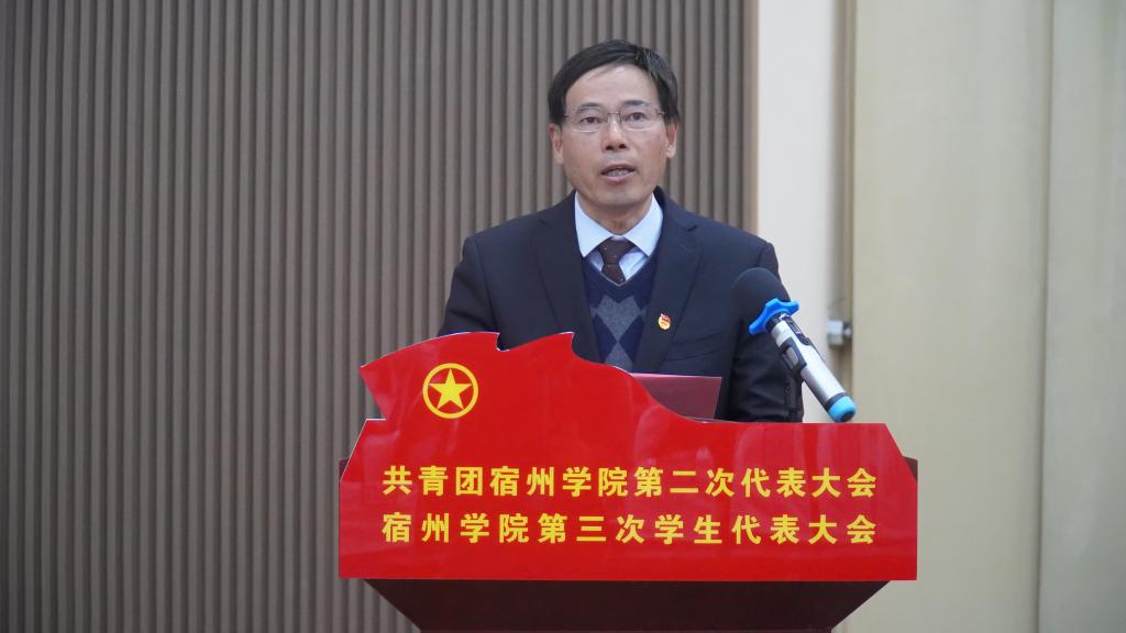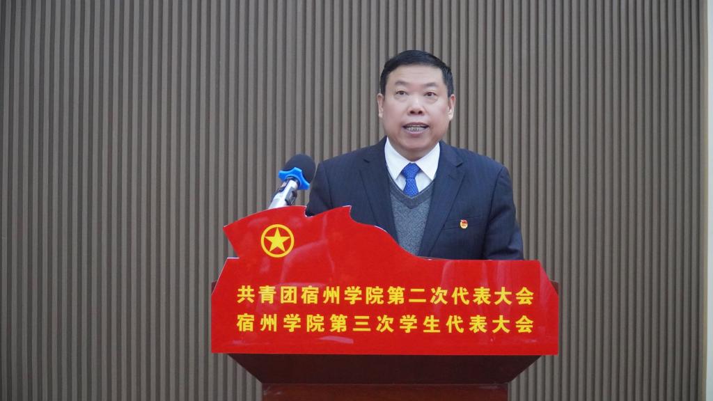 校党委书记汪刘送在开幕式上发表讲话。他指出:在团省委、省学联和校党委的坚强领导下,我校各级团学组织主动适应时代新变化和青年新需求,紧紧围绕立德树人根本任务,全面实施思想引领、素质拓展、基础团建工程,全力服务高素质人才培养和地方应用型高水平大学建设,在青马工程、志愿服务、实践育人、创新创业、团学改革等各方面取得了显著的工作成效,打造了众多工作品牌,选树了大量青年典型,展示了宿院青年的青春风采,产生了积极社会影响,得到了全校师生的高度认可。他代表校党委向学校各级团学组织和广大团员青年表示衷心的感谢,并对全体青年学生、全校团学组织提出了几点希望:一是希望广大团员青年坚定理想信念,矢志不渝听党话、跟党走。广大团员青年要用理想的旗帜标注青春的高度,牢记党的教诲,紧跟党的脚步,把自己的小我融入祖国的大我、人民的大我之中,与时代同步伐、与人民共命运,努力在实现第二个百年奋斗目标、实现中华民族伟大复兴的中国梦的生动实践中放飞青春梦想。二是希望广大团员青年勤于学习实践,坚定不移长知识、增才干。全校团员青年要坚信“梅花香自苦寒来”的真理,发扬“闻鸡起舞”“水滴石穿”的精神,珍惜大好时光,勤于学习钻研,敏于求知探索,让勤奋学习成为青春远航的动力,让增长本领成为青春搏击的能量。三是希望广大团员青年强化责任担当,勇立潮头担使命、做贡献。当代青年是同新时代共同前进的一代,建功新时代是青年最大的人生际遇,也是最大的人生考验。面对中华民族伟大复兴战略全局和世界百年未有之大变局,广大团员青年必须继续奋力把自己这一棒跑得更快更稳。