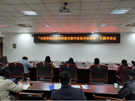 11月30日上午,教育部高等教育教学评估中心在线开展了“全国普通高校本科教育教学质量评估监测”专题培训会议。我校在逸夫楼第一会议室在线参加了此次视频培训。副校长张英彦、教务处处长王红艳、各二级学院院长、校教学督导委员会全体委员、发展规划处(教学质量监控与评估处)全体人员参加了培训。