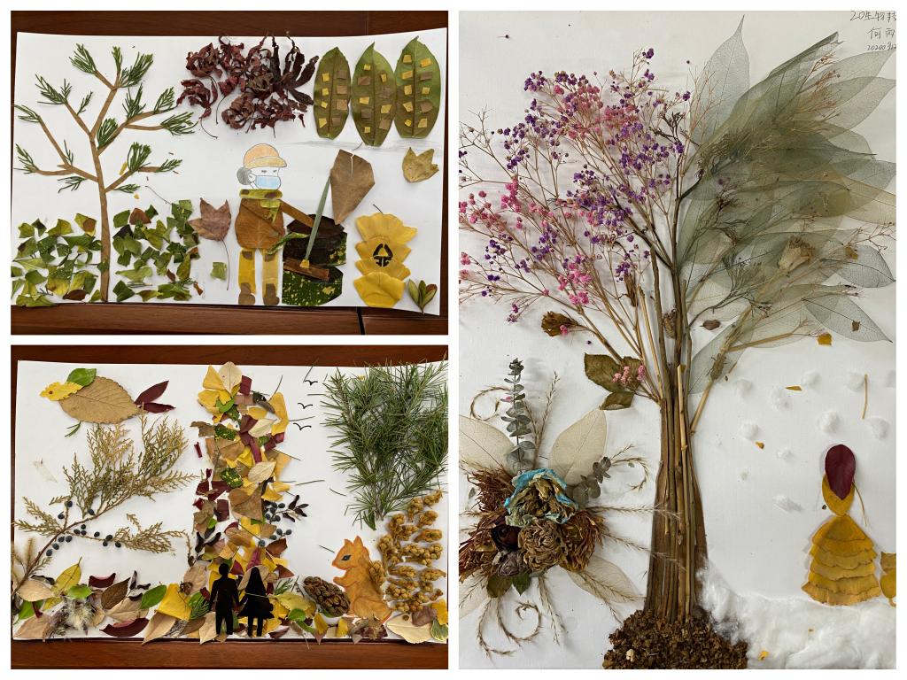 本次大赛获得了各个学院同学的广泛关注和积极参与,共收到贴画作品三十余组。同学们尽情发挥想象力,利用校园里的枯枝、落叶等大自然材料,通过剪、画、贴、写等方式,或是个人独立创作,亦或是团队创作,精心创作的一幅幅充满梦幻色彩和深刻寓意的作品,赋予落叶新的生命意义。