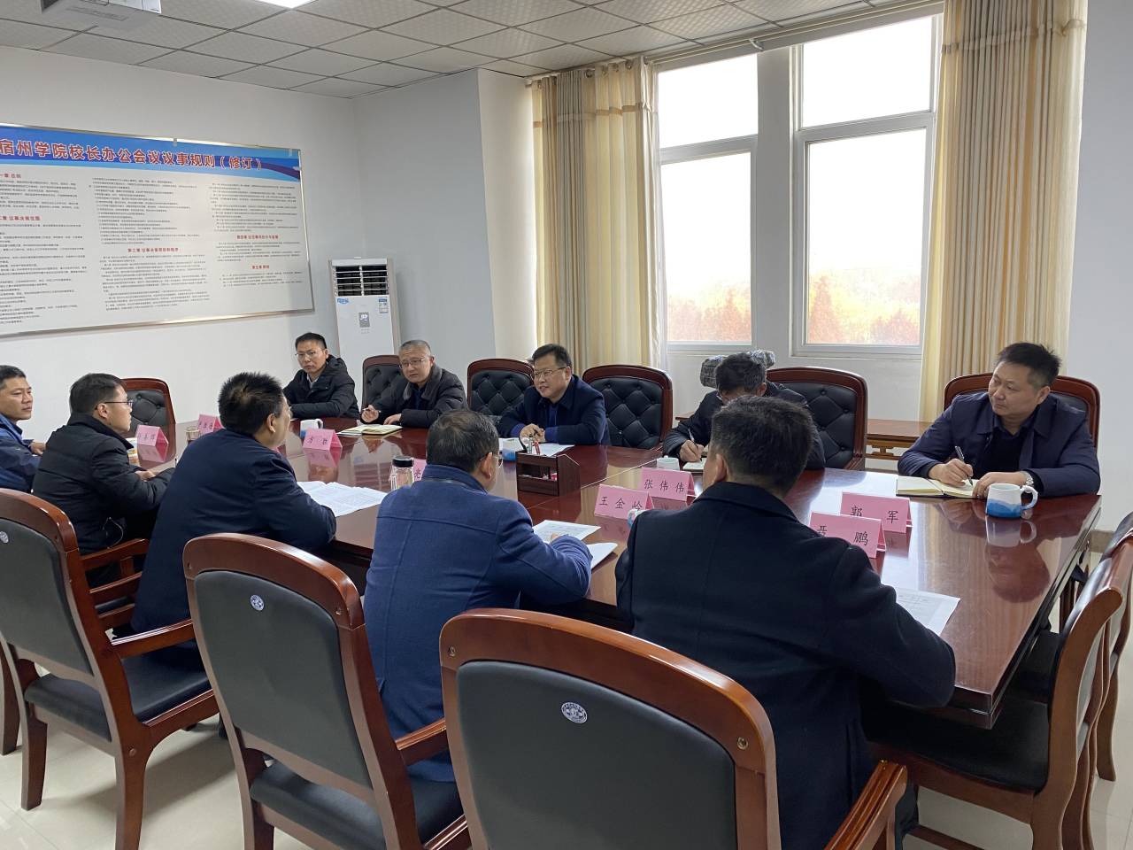 李亮对俞浩一行的到来表示热烈欢迎,介绍了学校基本情况,重点介绍了后勤服务保障、国有资产管理、安保情况,希望两校今后进一步加强交流,相互学习,共促发展。俞浩对我校的热情接待表示感谢,介绍了亳州学院建设发展基本情况,表示将学习互鉴,共同提高学校后勤服务保障水平与质量。