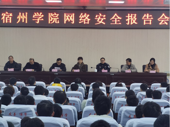 为进一步加强校园网络安全宣传教育,提升师生网络安全意识和防范技能,营造安全、健康、文明、和谐的网络文化氛围,12月14日上午,我校邀请了宿州市网络与信息安全信息通报中心主任杨德坤同志和宿州市公安局网安支队民警魏龙成同志,在逸夫楼第二会议室举办了一场网络安全知识专题报告会。我校宣传部、学工部、团委、招就处、办公室网络与信息技术中心、信息工程学院等师生代表200余人参加了专题报告会。