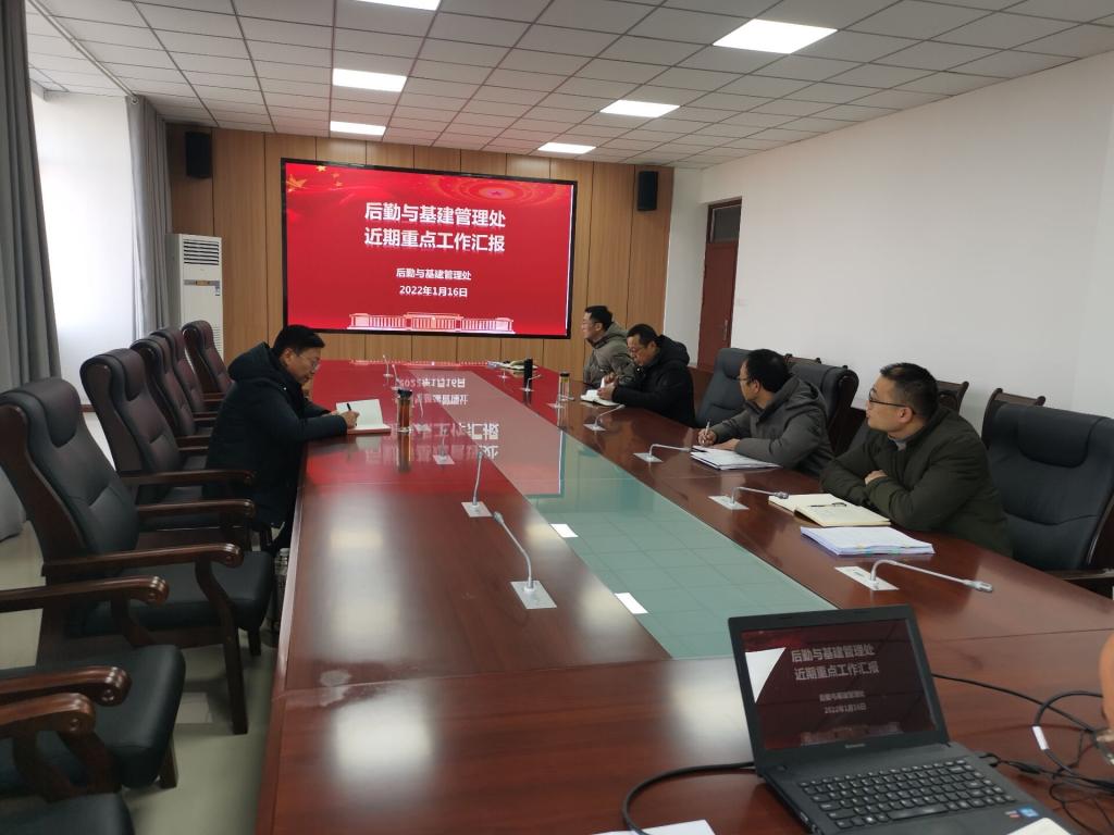 后勤与基建管理处处长王金岭围绕学校后勤基建近期重点工作,从工作现状、存在问题、思路举措等方面进行了汇报。与会人员对存在问题进行了充分讨论,也积极给出了自己的解决思路和建议。