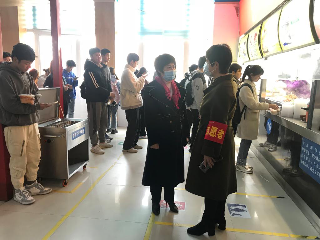 用心用情服务,疫情防控有温度。学校在落细落实各项疫情防控措施的同时,充分考虑师生学习生活需求,用心用情做好服务工作。校领导、处级领导干部、辅导员、班主任深入学生教室、宿舍,了解学生思想动态、学习生活方面的困难,帮助学生解决相关问题,叮嘱学生做好个人防护。针对毕业班学生,论文指导教师充分利用微信或QQ等网络通讯方式保持和指导同学的联系,不论是文献的检索,还是数据的挖掘,老师们都给予了热心的指导帮助。针对部分同学关心的毕业设计如何进行的问题,教务处也做出了调整性的安排。对于一些申请学分材料等事务,辅导员直接联系学生,通过线上方式完成。学校组织党员领导干部到食堂开展就餐秩序维护志愿服务工作,组织教师开展核酸检测志愿服务工作,温情服务师生。