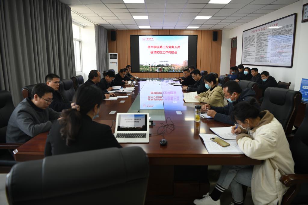 3月28日下午,我校在逸夫楼504会议室召开第三方劳务人员疫情防控工作调度会,副校长杨维志,校办公室主任岳尧,保卫处处长孙裕金、副处长张晓聪,后勤与基建管理处处长王金岭、副处长孙继军、周霁野、刘发明以及科级以上干部,学校第三方劳务公司负责人参加会议,会议由杨维志主持。