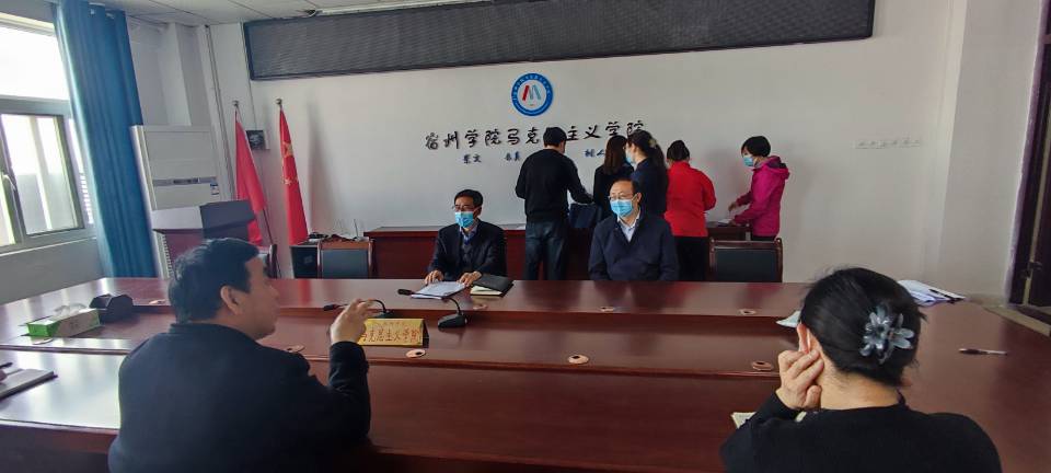 蔡之让指出,要做好疫情防控形势下马克思主义学院思想政治教育工作,切实强化防控意识,坚持从严从紧,加强动态管理。要严格落实请销假、晨午检、零报告和日报告等制度。要加强对居家隔离教职工和暂缓返宿教职工的关心关爱,帮助解决实际困难。
