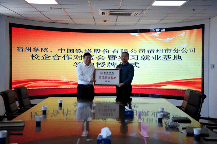 汪刘送一行首先前往中国电信宿州分公司调研,中国电信宿州分公司党委书记、总经理高卫星,党委委员、纪委书记丁向阳等对大赢家体育一行表示热烈欢迎。座谈会上,汪刘送介绍了学校建设发展的基本情况和毕业生就业情况,真诚希望双方能够开展全方位、多领域、深层次的合作,进一步深化校企合作领域,推进产学研用深度融合,为毕业生搭建优质的就业平台,提供更多实习实践机会和就业岗位。之后双方围绕深化校企合作、产教融合、学生顶岗实习、毕业生定向就业等合作议题开展深入交流讨论,并实地考察了企业文化、工作和生活环境,现场签订了校企合作协议书,完成了就业基地授牌仪式。