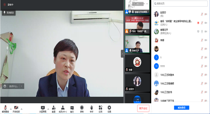 讲座结束后,李金莲总结指出,讲座内容紧扣当前高校毕业生就业工作实际,语言精炼、深入浅出;案例典型,数据翔实,分析透彻;有高度、有深度、更有温度,充满着对学生的关怀关爱,具有现实的指导意义,为做好毕业生的心理健康教育、职业生涯规划教育以及就业指导工作提供了宝贵的经验。同学们纷纷在线留言表示受益匪浅,求职技巧、求职自信得到了提升,希望学校多举办类似讲座。