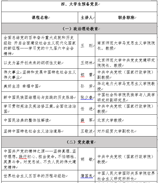 本次培训形式多样,主要分为课程学习、主题研讨、撰写思想汇报、在线考试四个环节,其中课程学习环节内容丰富,培训遵循“按需施训、分类实施、注重实效”的原则,结合参训对象教育实际分类设计学习内容,围绕习近平新时代中国特色社会主义思想、形势政策教育、党的百年奋斗重大成就和历史经验、党章党规党纪和党的基本知识、党的宗旨教育、党员入党程序和流程、理想信念教育、爱国主义教育、党性修养提升、优秀党员事迹学习等内容设置必修课程,围绕大学生道德修养与法律基础、学习方法与科研能力、职业规划与就业指导、人际交往与沟通艺术、心理健康与压力管理等内容设置选修课程,以“课程超市”的形式供学员自主选学,培训课程将通过专题报告与讲座、系列微课、专题片、纪录片等形式呈现。