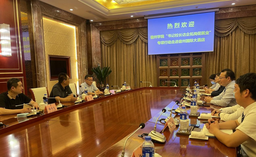 随后,李亮一行实地走访了宿州国际大酒店和宿州璞悦房地产开发有限公司。座谈会上,李亮表示大赢家体育以服务地方经济社会发展为导向,希望能与企业在人才培养、学生就业等方面开展密切合作,使我校的人才培养体系对接地方人才需求,为推动双方高质量发展做出贡献。