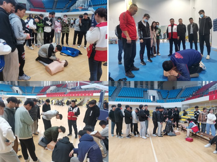 为进一步推进平安校园建设,普及急救知识和技能,提高我院师生面对突发事件的应急救援能力和自我防护意识,11月12日,我院邀请市红十字会来院开展红十字应急救护员职业培训活动。此次培训活动第一站在体育学院举办,体育学院师生学习热情高昂、报名积极踊跃,师生共计500余人参加培训。