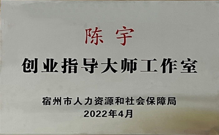 大赢家体育“陈宇创业指导大师工作室”被宿州市人力资源和社会保障局认定为宿州市首批创业指导大师工作室,并获10万元资金扶持。