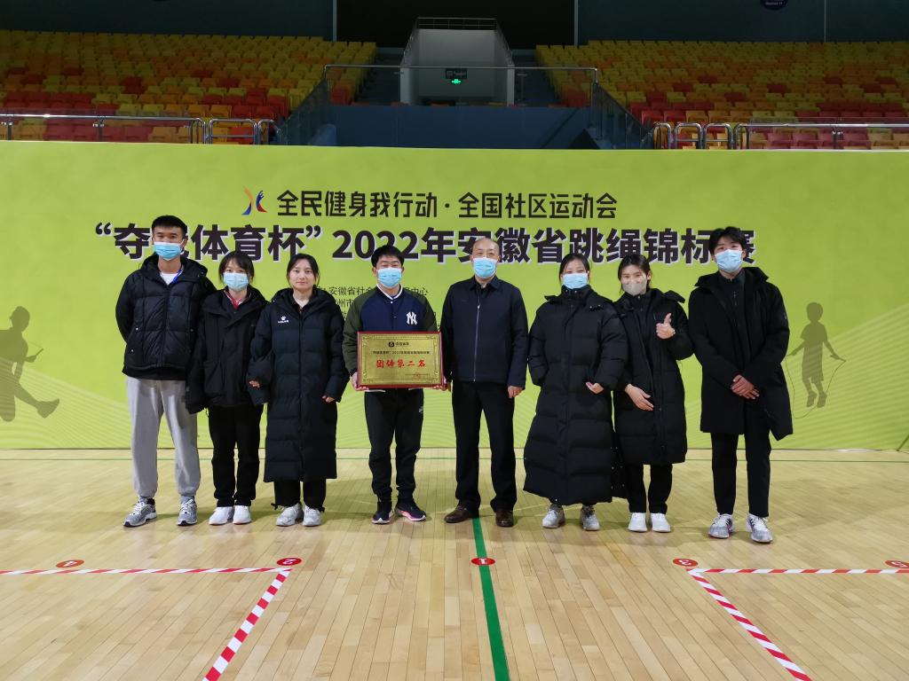 为进一步促进全民健身运动的开展,普及跳绳运动,满足广大跳绳爱好者的需求,由省社会体育指导中心主办的安徽省跳绳锦标赛定于12月3日至5日在宿州市举行。我院体育学院选派夏露、朱志昊、陈奇、郭琦琦、郝奇奇、孙梦亭、章丽娟、胡玲8名同学组队,马超老师担任教练代表宿州市参加2022年安徽省跳绳锦标赛青年组比赛。通过激烈的角逐,我院学子在参加的个人单项30s单摇、30s双摇、3分钟耐力单摇跳和集体项目30s一带一、30s间隔交叉跳项目中,最终共获得金牌八块、银牌五块、铜牌三块和团体积分第二名的优异成绩。