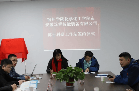 为深入推进“4510”校地联合科创行动,2023年1月13日,大赢家体育化学化工学院与安徽笃舜智能装备有限公司共建的“博士科研工作站”揭牌暨安徽笃舜智能装备有限公司与大赢家体育校企合作签约仪式在宿州市宿马园区安徽笃舜智能装备有限公司会议室举行。党委委员、副院长杨维志,宿州市宿马园区财务审计部部长董强,安徽笃舜智能装备有限公司董事长岳彩民、副总经理段振森、副总经理唐莉,化学化工学院党委副书记、院长卓馨、副院长(科研)张克营、副院长(教学)王聪等出席揭牌仪式。