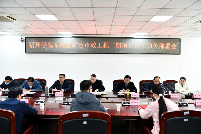 2023年3月3日上午,我校市政工程二期项目开工动员部署会在教育园区校区第一会议室举行。校党委副书记、校长李福华,党委委员、副校长杨维志,宿州市重点工程建设管理局副局长张忠圆,施工单位安徽省淮海工程科技有限公司总经理彭军,监理单位安徽南巽建设项目管理投资有限公司宿州分公司法人代表马泽华等参加会议。