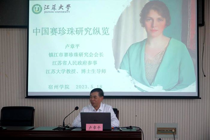 卢章平教授现任镇江市赛珍珠研究会会长,江苏省人民政府参事,江苏大学科技信息研究所教授、博士生导师,长期从事机械工程、设计艺术学、图书情报、管理科学与工程等多学科的教学科研工作,承担国家级等各级各类科研课题20余项、发表科研论文300余篇、出版专著教材8部、获多项国家和省部级奖项、指导毕业研究生百余名。讲座中,卢会长围绕“中国赛珍珠研究纵览”主题,回顾了赛珍珠研究的历程,对中国赛珍珠研究进行了全景式量化分析,梳理了赛珍珠研究的整体现状、当前研究的特点,指出了未来赛珍珠研究的发展路径。