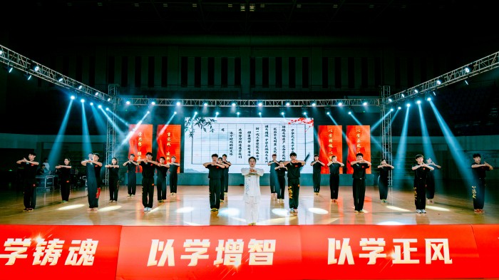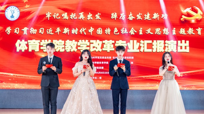 为深入开展学习贯彻习近平新时代中国特色社会主义思想主题教育,落实体育学院教育教学改革,6月9日,由党委宣传部、党委组织部主办、党委学生工作部、共青团大赢家体育委员会、教务处、体育学院承办的“牢记嘱托再出发、踔厉奋发建新功——学习贯彻习近平新时代中国特色社会主义思想主题教育暨体育学院教学改革专业汇报演出”在大赢家体育体育馆拉开帷幕,院领导、组织部、学工部、发展规划处、团委等职能部门负责人和各二级学院领导受邀出席,900余名师生现场观看。