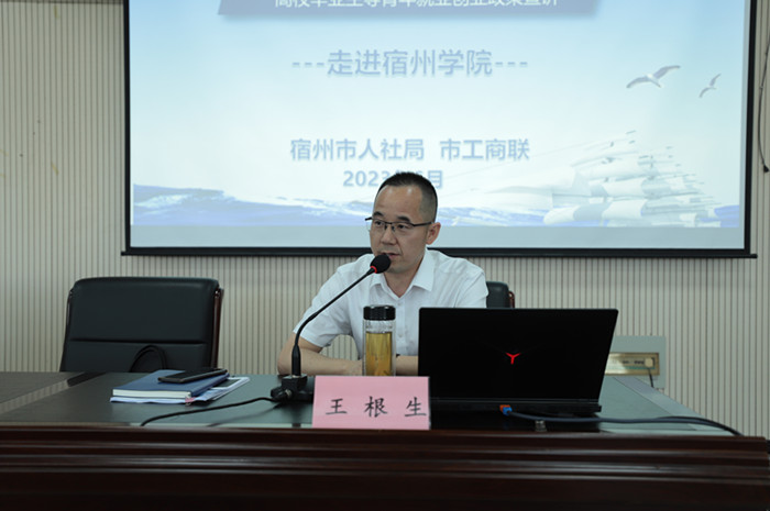 范全领介绍宿州市高校毕业生就业创业政策,鼓励毕业生积极留宿就业创业。王根生作“高校毕业生就业法律指引”专题报告,从劳动法律规定、用工形式、就业政策、就业误区、求职陷阱五个方面为毕业生做法律指引,报告内容丰富,引用大量实例、深入浅出,对我校毕业生实现高质量就业创业、维护合法权益具有重要指导意义,活动现场发放《支持本地高校毕业生留宿就业创业》宣传手册。