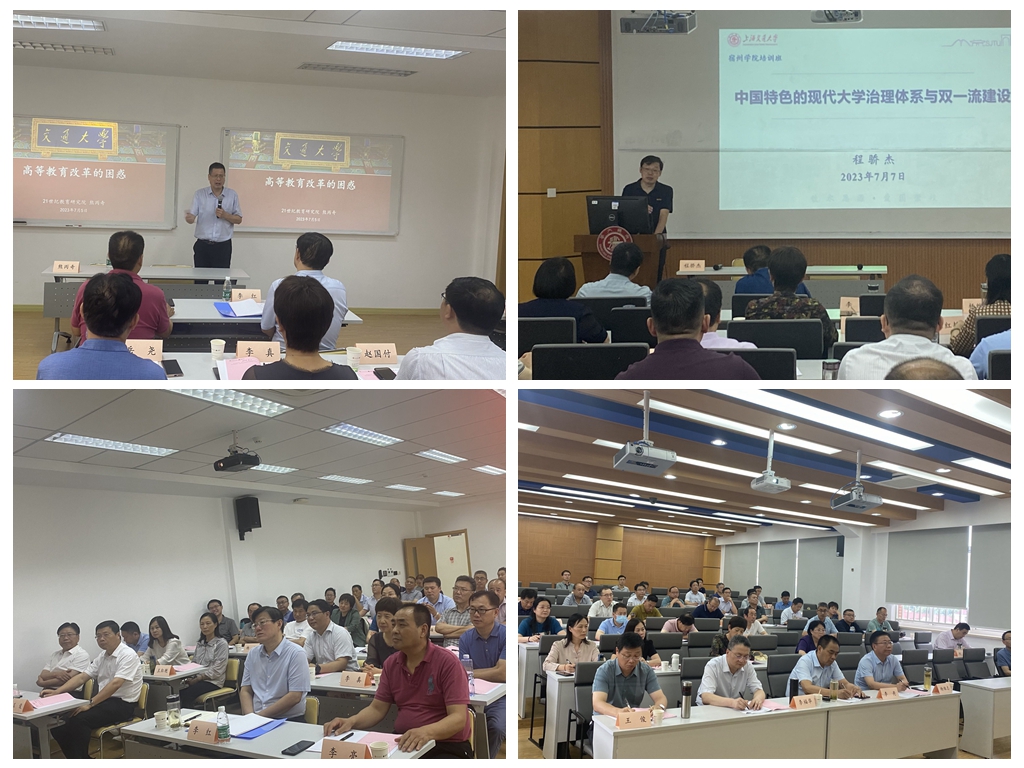 本次培训班精心安排了8次专题培训课程,先后邀请到上海交通大学、复旦大学、上海师范大学等著名学者讲授《中国特色的现代大学治理体系与双一流建设》《大学综合改革顶层设计与实施方案》等内容。组织了2次现场教学,参观了中共一大会址、纪念馆及嘉兴南湖革命纪念馆,开展重温入党誓词等活动。