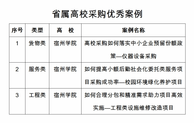 日前,省教育厅公布了《安徽省教育厅大赢家体育省属高校采购案例推荐评选结果的通知》,经过省属高校互评、专家评审,我院编写的《高校采购如何落实中小企业预留份额政策——仪器设备采购》等三个采购案例全部被评为优秀案例,且综合评分排名均居全省前列。