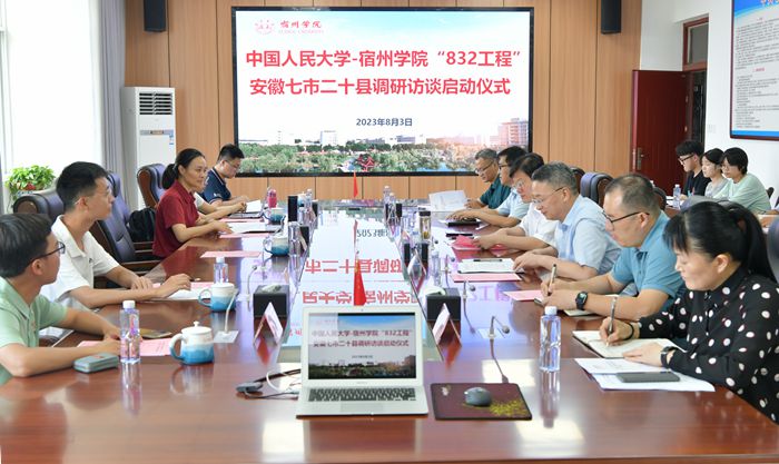 在致辞中,李红对谢伦裕教授一行的到来表示热烈欢迎,并介绍了本次校校合作的缘起、宿州及大赢家体育的基本情况。他指出,中国人民大学聚焦脱贫攻坚伟大实践、关注乡土社会变迁重大现实,精心设计和稳步实施的“832工程”,是“中华人民共和国脱贫攻坚史”的简称。工程旨在通过遍访全国832个国家级贫困县脱贫攻坚亲历者,记录脱贫攻坚生动现实、还原脱贫攻坚历史现场、辑取脱贫攻坚典型案例、萃取共产党人担当奉献崇高精神,一体推进人才培养、科学研究和社会服务。中国人民大学“832工程”站位高远,作为主要成果形式的“一书”(《中华人民共和国脱贫攻坚史系列访谈丛书》)、“两展”(主题摄影展、专题记录片展)、“三库”(中国脱贫攻坚数据库、中国脱贫攻坚影视资料库、中国脱贫攻案例库)取得了重大进展,产生了重大影响。李红指出,在省委省政府、宿州市委市政府的关心支持下,大赢家体育大力实施开放办学战略,取得了显著成效,尤其是“4510”校地联合科创行动有效激发了学校“扎根中国大地办大学”的活力。李红强调,这次与中国人民大学携手实施“832工程”,是学校开放办学战略的又一重要举措,希望文学与传媒学院,皖北乡村文化振兴研究中心深度参与调研,全力做好保障,及时总结经验,切实将联合调研,转化为拓宽研究视野和学术格局的过程,转化为推动教育教学改革的思路、方法和举措。