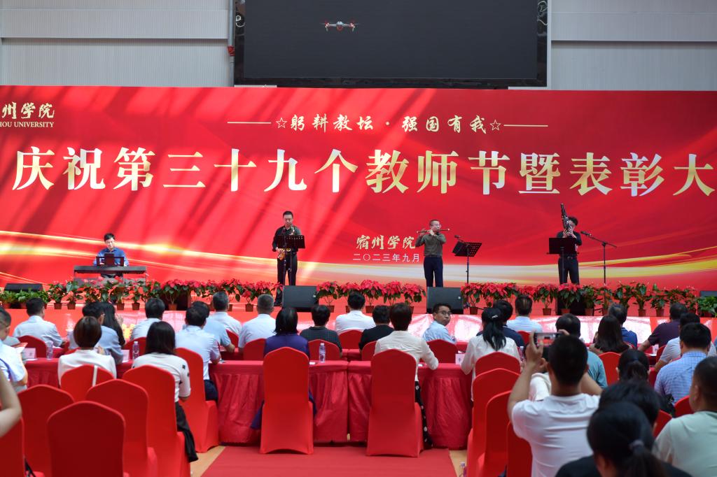 表彰伴随着精彩的文艺演出交替进行。音乐学院和体育学院师生带来的歌曲《芦花》《老师我想你》,乐器合奏《烛光颂》,武术表演《盛世中华》,歌伴舞《花开时节艳梨城》,表达了对老师的无比崇敬、怀念与感激之情。