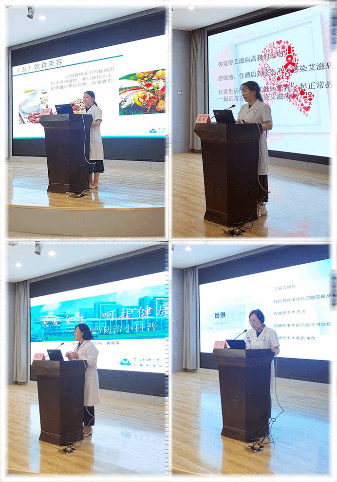 会上,贾学彬代表学院对医生团队的到来表示热烈欢迎,陈芳芳和许温萍表达了以专业的知识和技能服务师生的美好初衷。随后,中医科主任医师乔红、皮肤科副主任医师陈秋、妇科副主任医师黄蓓蓓以及整形外科副主任医师李丹分别进行了题为《中医美容》、《适合高校生体质的防艾小贴士》、《关爱女性,呵护健康-HPV防治小科普》以及《让心灵的窗户更加“晴”彩》的科普报告。这些报告的内容贴合生活实际,有助于女性更好地提高自我保护意识和健康水平。