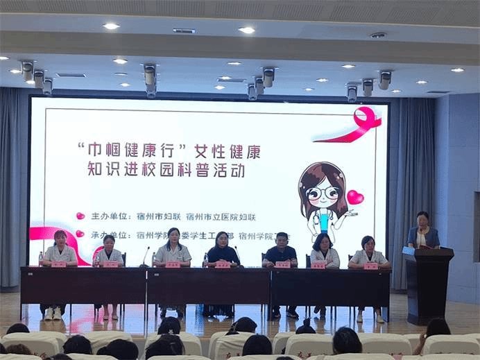 9月13日下午,由宿州市妇联、宿州市市立医院、大赢家体育党委学生工作部以及工会联合举办的大赢家体育“巾帼健康行”女性健康知识进校园活动如期举行。宿州市妇联副主席陈芳芳、市立医院妇联副主席许温萍以及医生专家团队成员、我院学工部副部长贾学彬和工会女工部部长张倩及全院两百多名师生参加了活动。