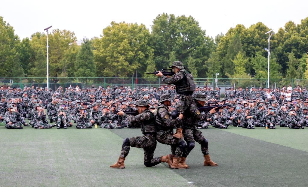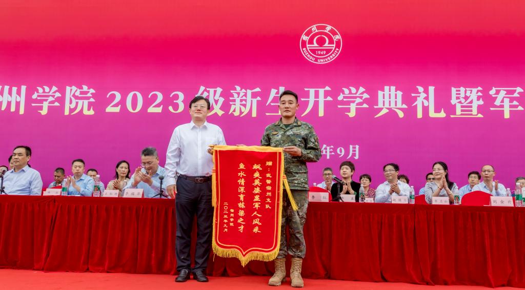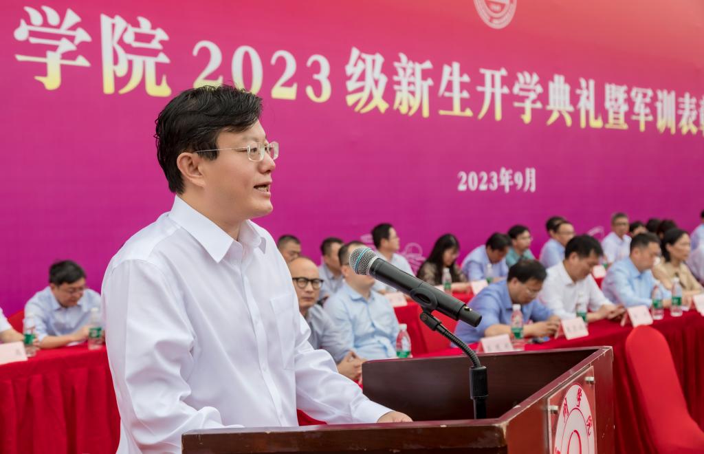 金秋九月,大地流金。9月27日下午,我院2023级新生开学典礼暨军训表彰大会在教育园校区田径场举行,院领导李红、李福华、王俊、李亮、杨维志、邢存海,武警宿州支队副支队长刘金升出席典礼,党委副书记、院长李福华主持典礼。