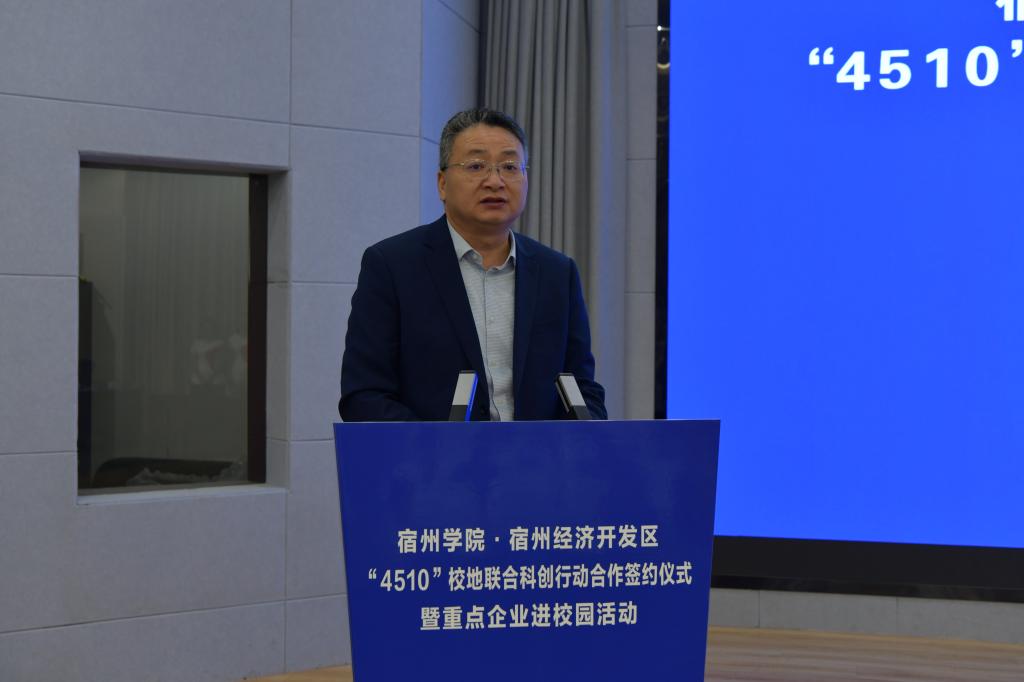 李红指出,宿州市经开区是省级开发区,正培育建设国家级开发区,园区产业特色鲜明,优质企业众多,发展潜力巨大,合作空间广阔。此次合作签约仪式暨重点企业进校园活动既为深化校企合作搭建了重要平台,也是促进共赢发展的又一重要举措。希望政、校、企进一步优化常态长效合作机制,坚持“企业出题、校企共答、市场阅卷”,加强科技联合攻关,深化人才协同培养,强化创新平台共同培育,促进更多成果就地转化和产业化,做强、做优“4510”校地联合科创行动,共同为全面建设现代化新宿州作出新的更大贡献。