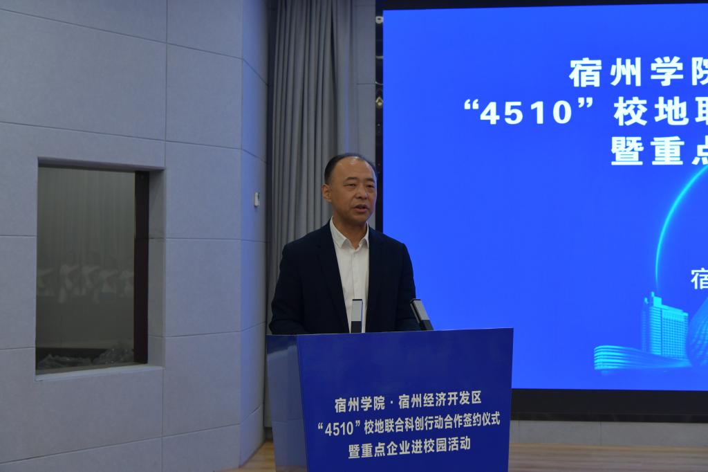 李福华在主持活动时指出,学校将以此次活动为新的契机,以更加开放的办学理念,更加奋发的精神状态,更加务实的工作举措,把地方应用型高水平大学各项工作做实、做大、做强,共同把“4510”校地联合科创行动做深、做特、做亮,推动校地、校企、校校合作更深层次、更广领域走向新未来、迈上新台阶,推动更多成果在宿州落地生根、开花结果。